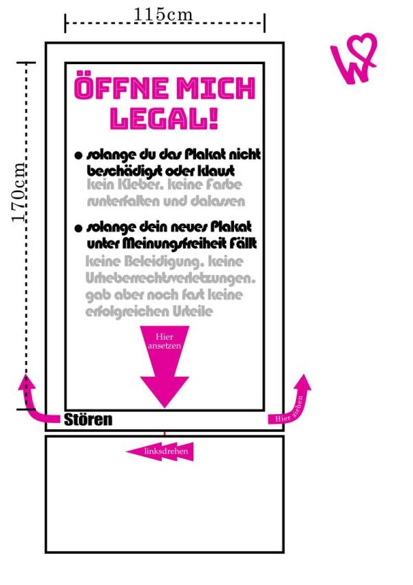 Wichtig für Adbusting sind natürlich passende Plakate, die wichtige Themen idealerweise mit etwas Witz ansprechen. Außerdem braucht es das passende Werkzeug, um die Vitrinen zu öffnen. Einen guten Guide dafür bietet diese Seite: https://adbustingschluesseldienst.noblogs.org/ oder diese: https://de.indymedia.org/tutorial/27605